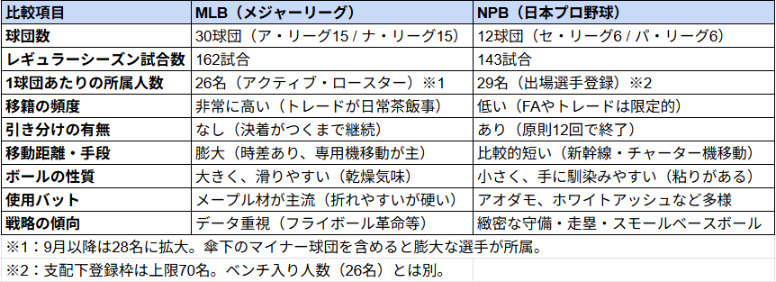 MLBと日本プロ野球の違い